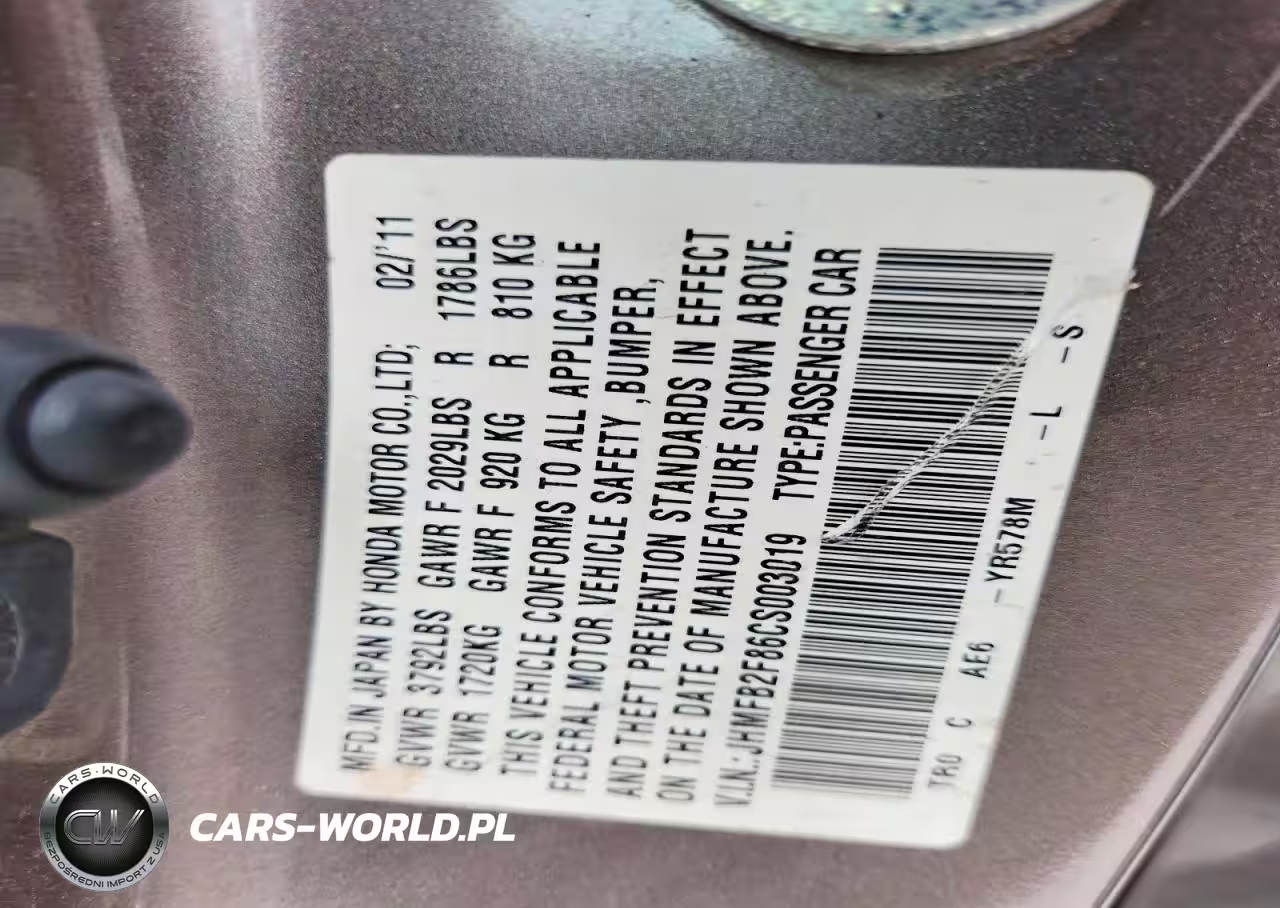 Copart Nr: C-48900836 VIN: JHMFB2F86CS003019 Port: Houston, TX