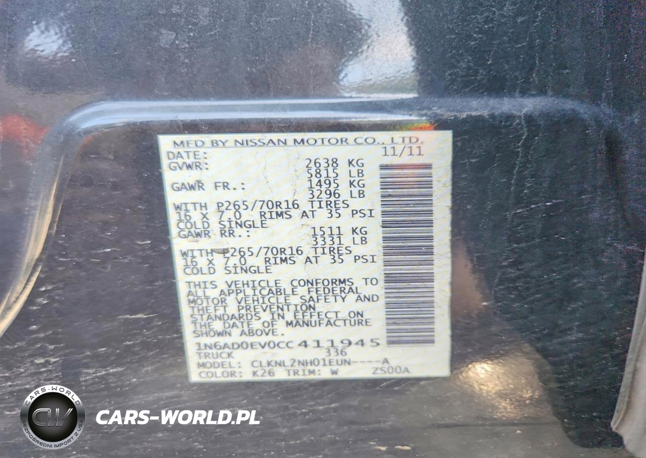 Copart Nr: C-48901026 VIN: 1N6AD0EV0CC411945 Port: Elizabeth, NJ