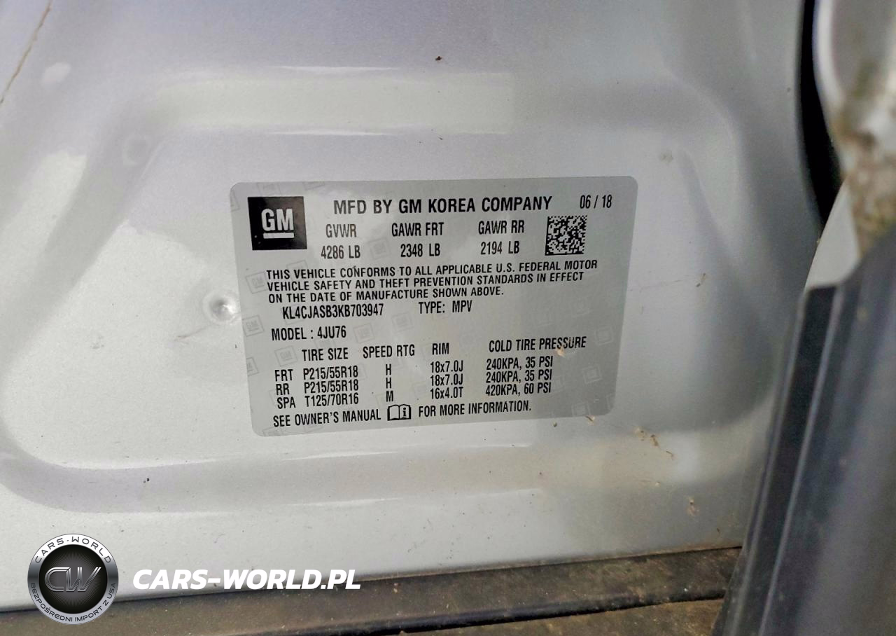 Copart Nr: C-48903526 VIN: KL4CJASB3KB703947 Port: Indianapolis, IN