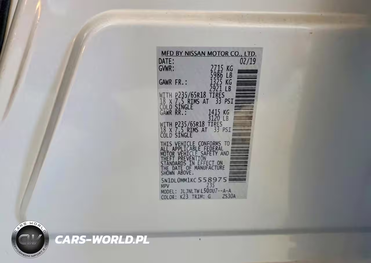 Copart Nr: C-48904146 VIN: 5N1DL0MM1KC558975 Port: Indianapolis, IN