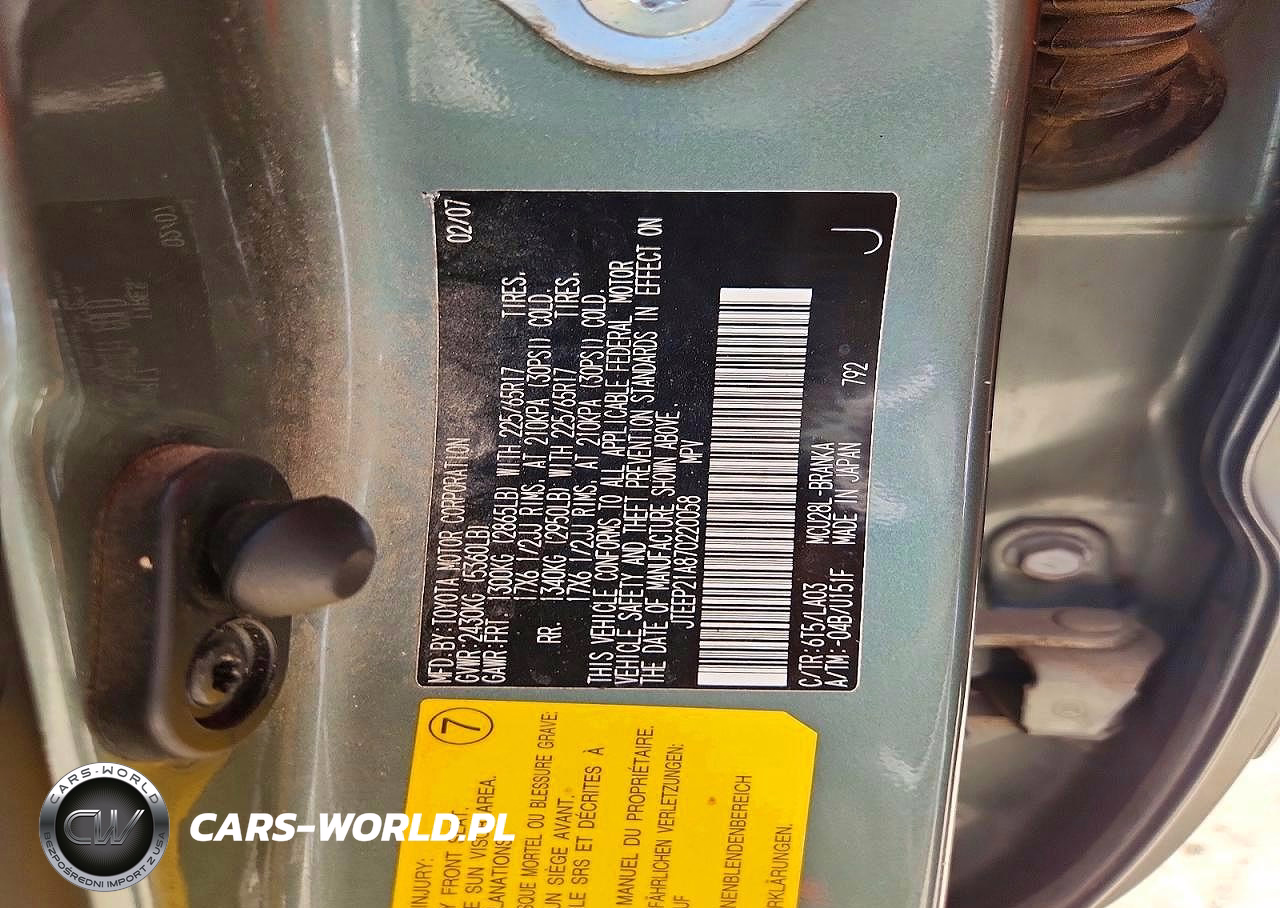 Copart Nr: C-48906026 VIN: JTEEP21A870220058 Port: Houston, TX