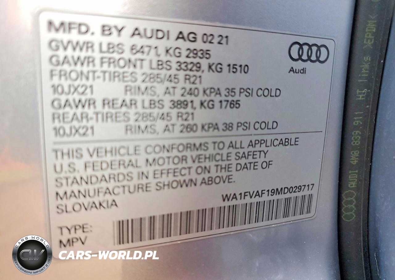 Copart Nr: C-48927476 VIN: WA1FVAF19MD029717 Port: Savannah, GA