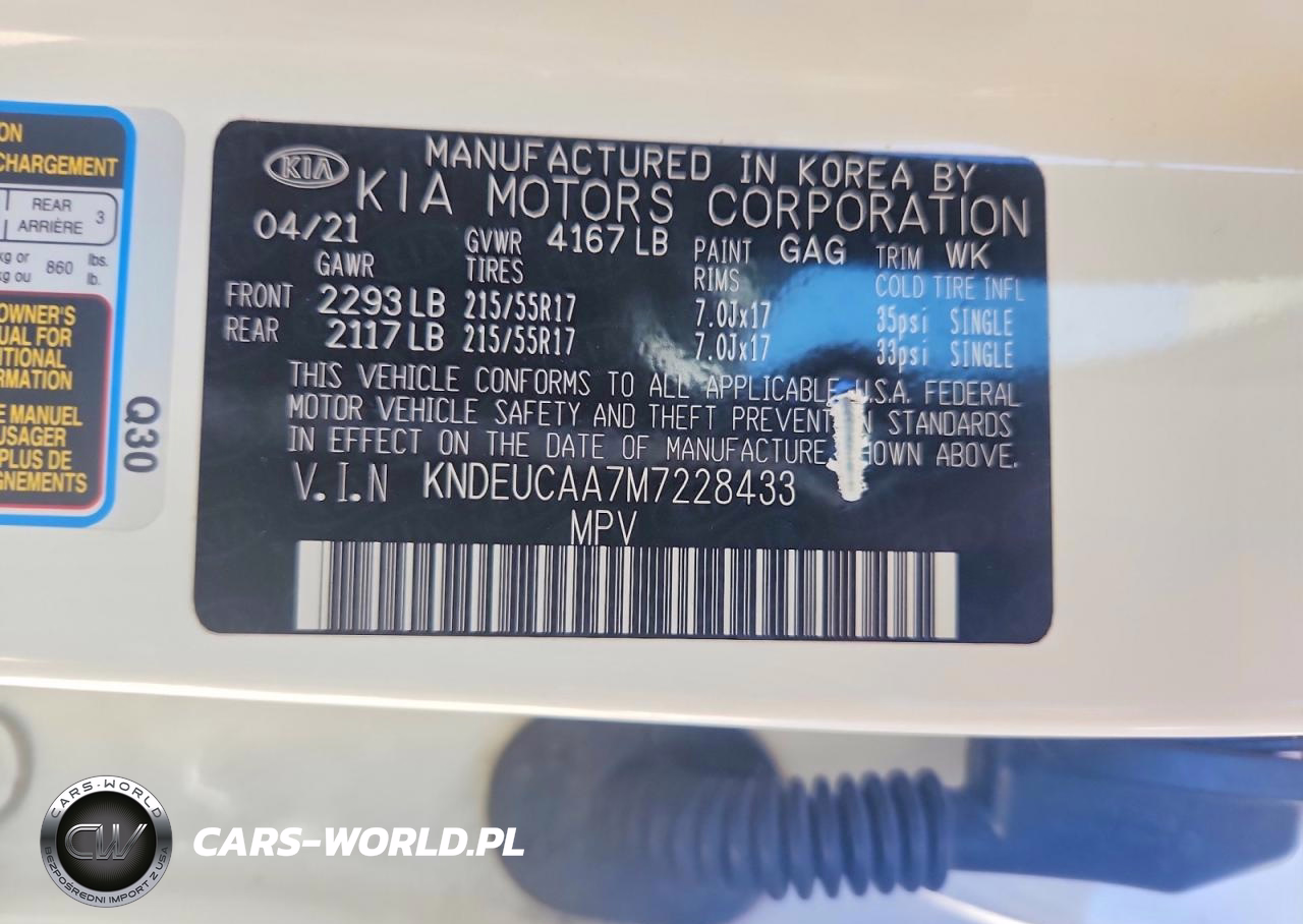 Copart Nr: C-48954316 VIN: KNDEUCAA7M7228433 Port: Houston, TX