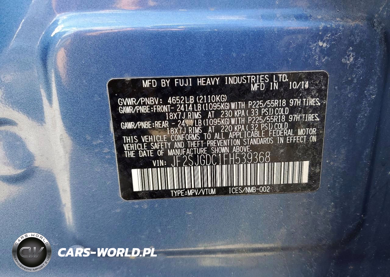 Copart Nr: C-48968936 VIN: JF2SJGDC1FH539368 Port: Elizabeth, NJ