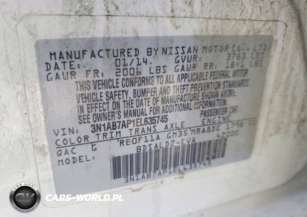 Copart Nr: C-48972396 VIN: 3N1AB7AP1EL635745 Port: Los Angeles, CA