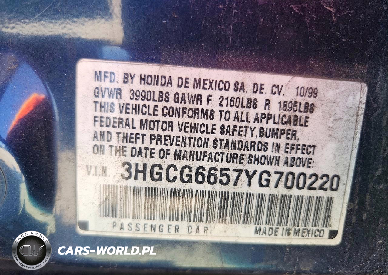 Copart Nr: C-48979776 VIN: 3HGCG6657YG700220 Port: Los Angeles, CA