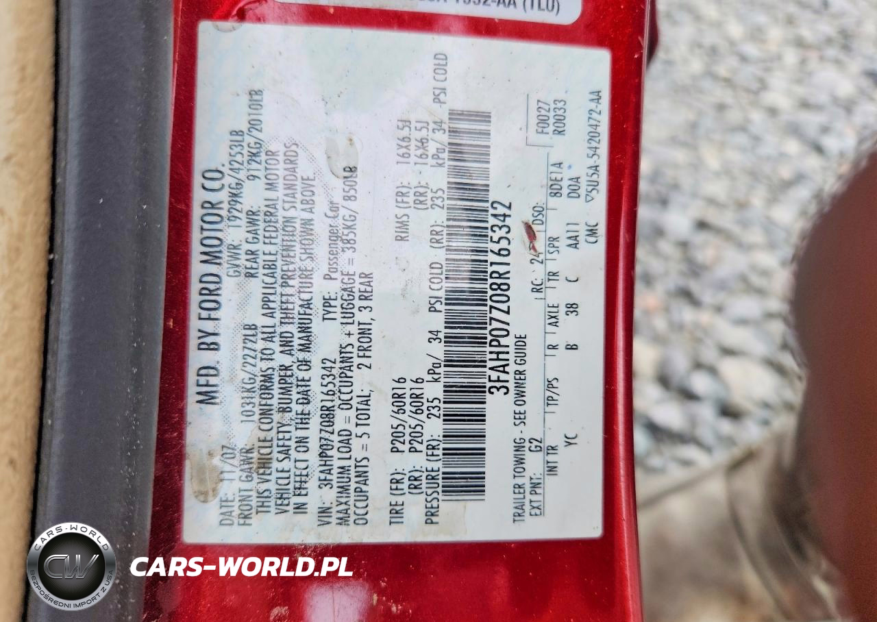 Copart Nr: C-48979846 VIN: 3FAHP07Z08R165342 Port: Savannah, GA