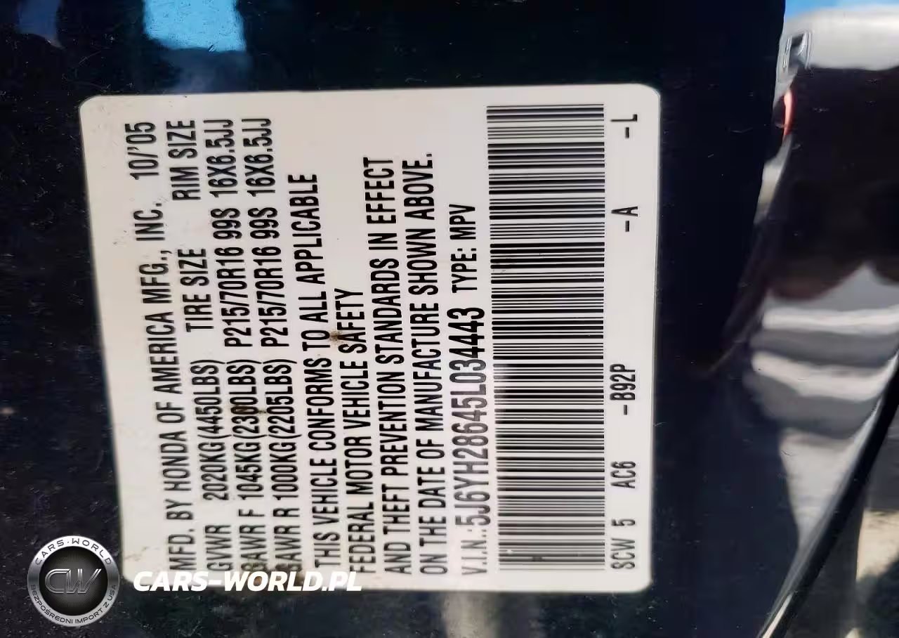 Copart Nr: C-48983166 VIN: 5J6YH28645L034443 Port: Los Angeles, CA
