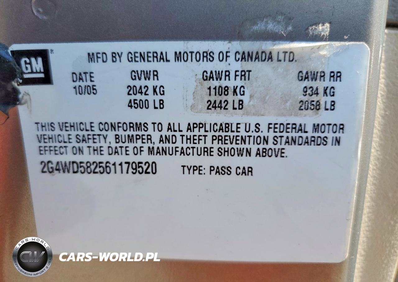 Copart Nr: C-49001396 VIN: 2G4WD582561179520 Port: Indianapolis, IN