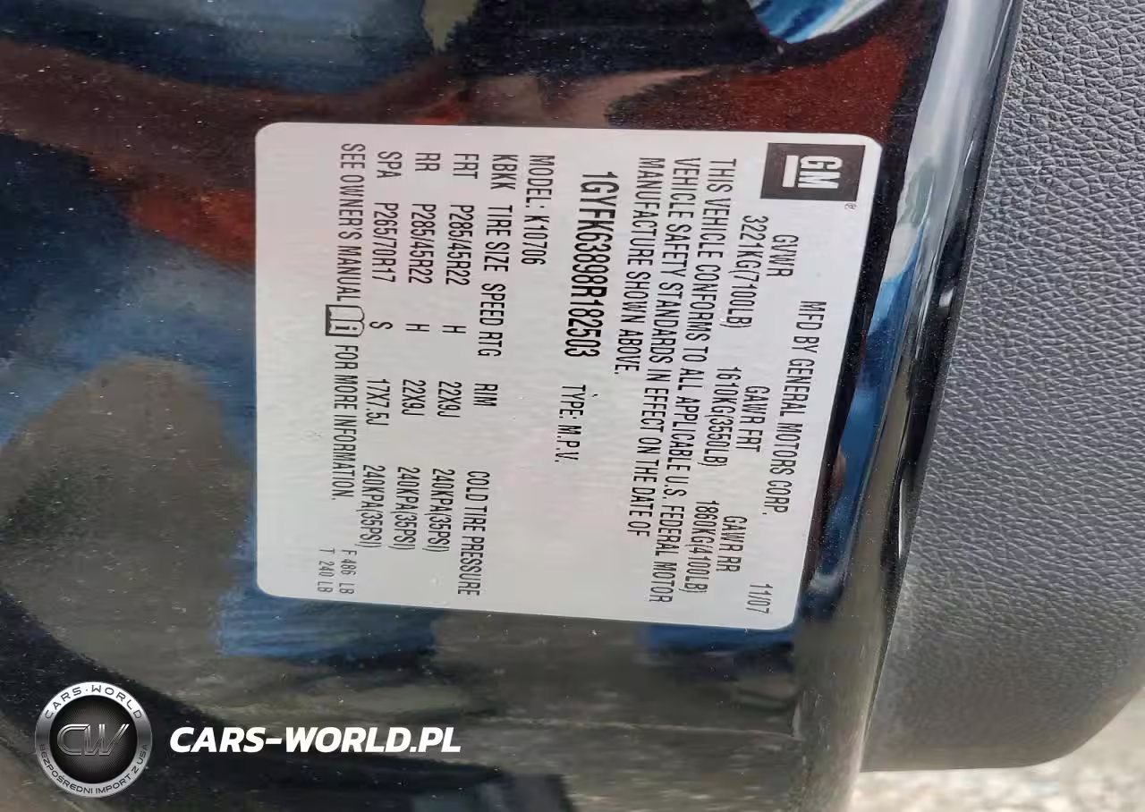 Copart Nr: C-49005006 VIN: 1GYFK63898R182503 Port: Elizabeth, NJ