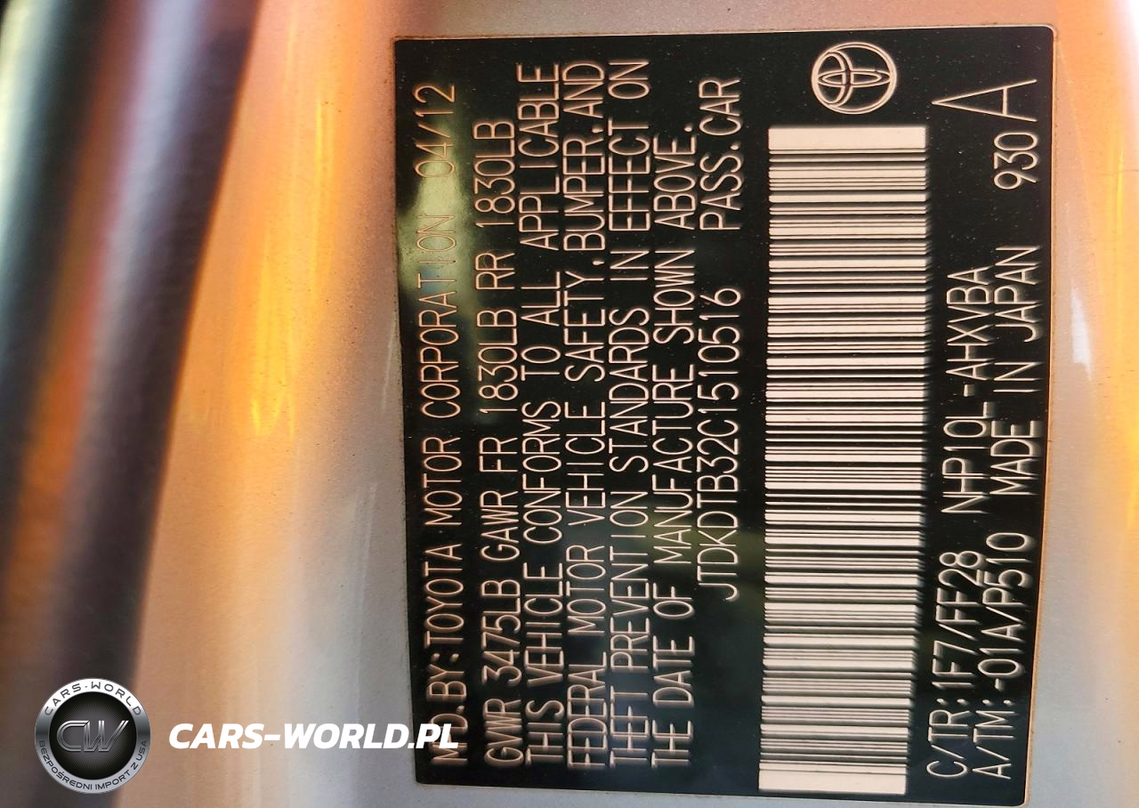 Copart Nr: C-49007506 VIN: JTDKDTB32C1510516 Port: Elizabeth, NJ