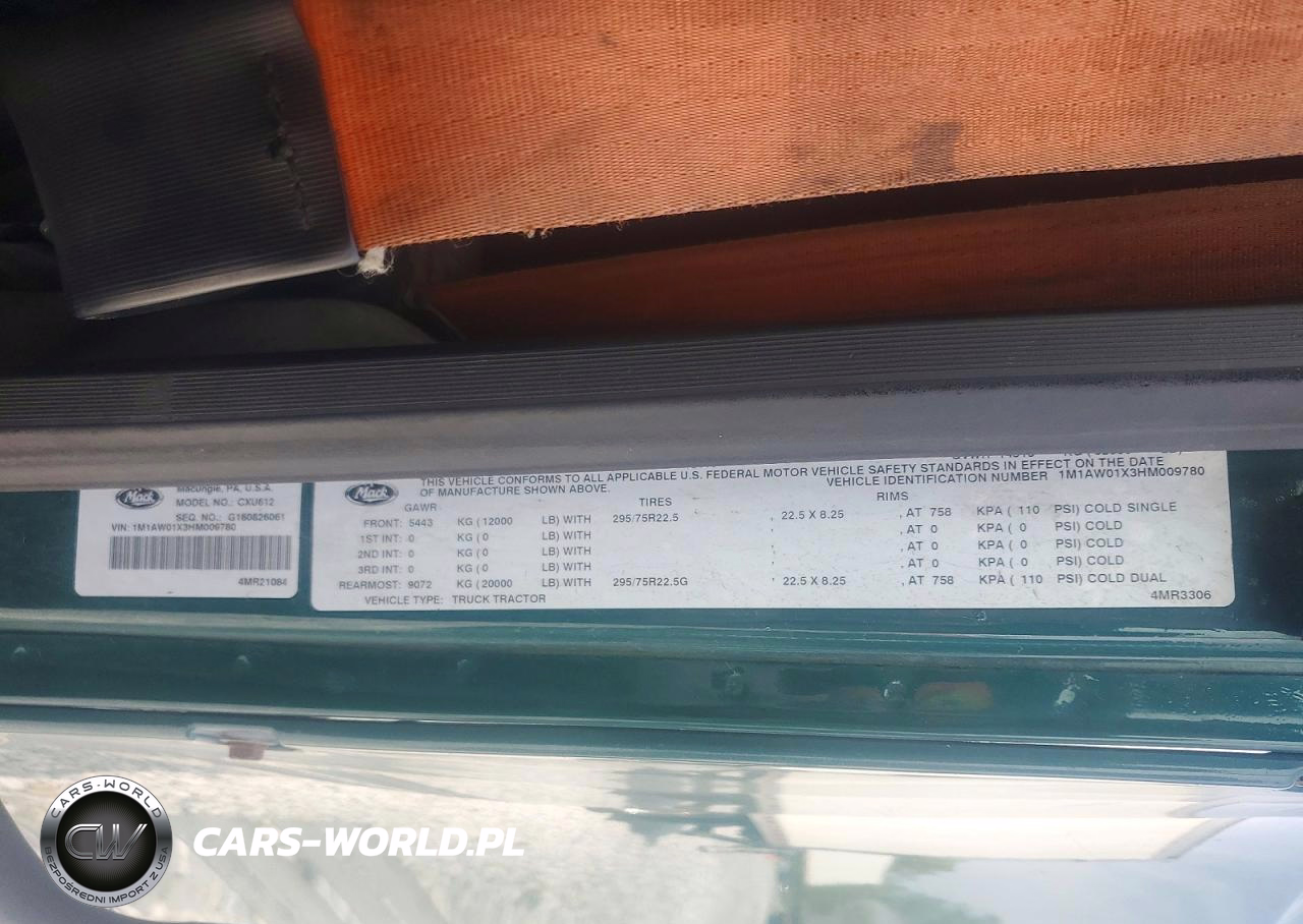 Copart Nr: C-49012516 VIN: 1M1AW01X3HM009780 Port: Elizabeth, NJ