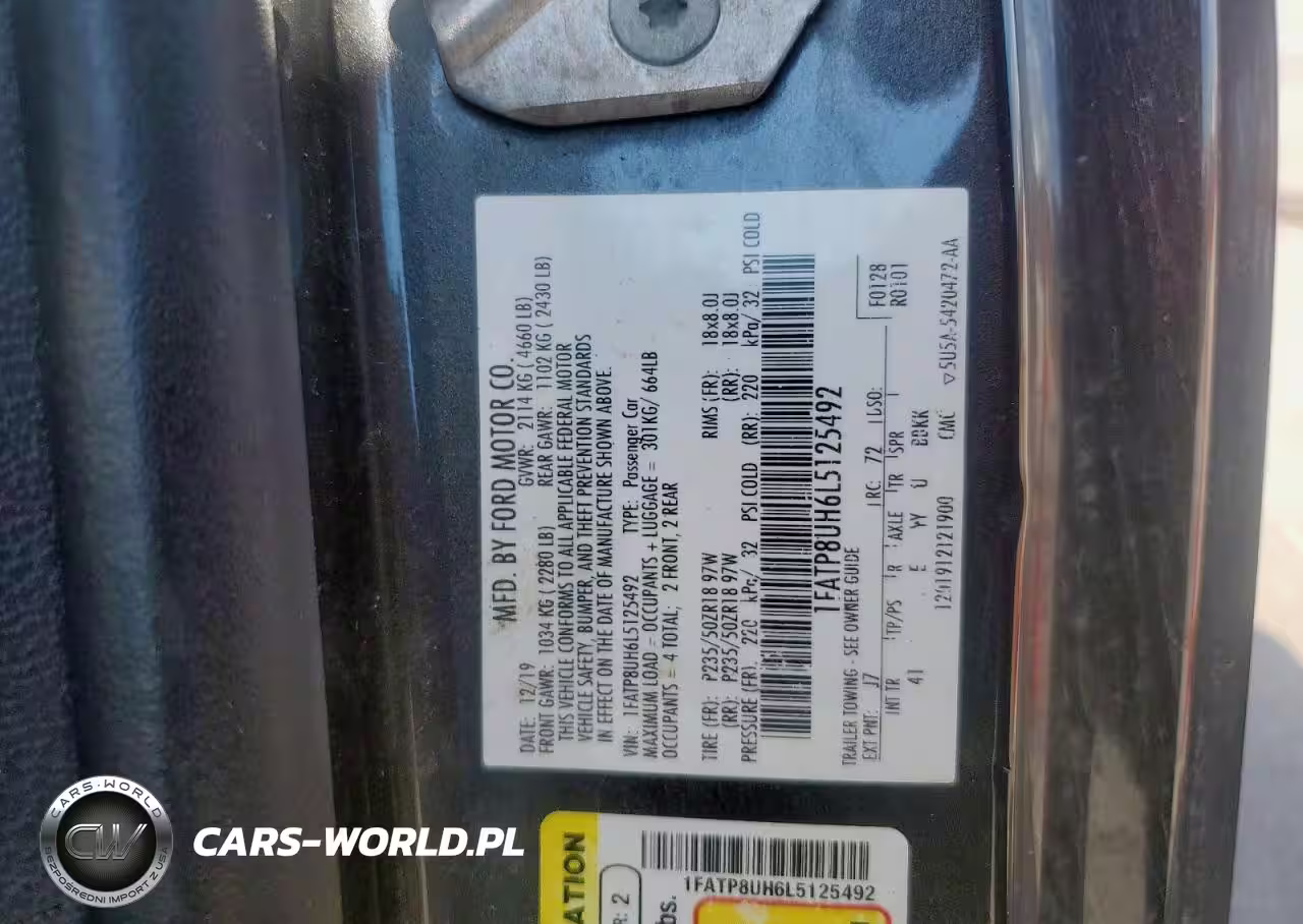 Copart Nr: C-49012716 VIN: 1FATP8UH6L5125492 Port: Houston, TX