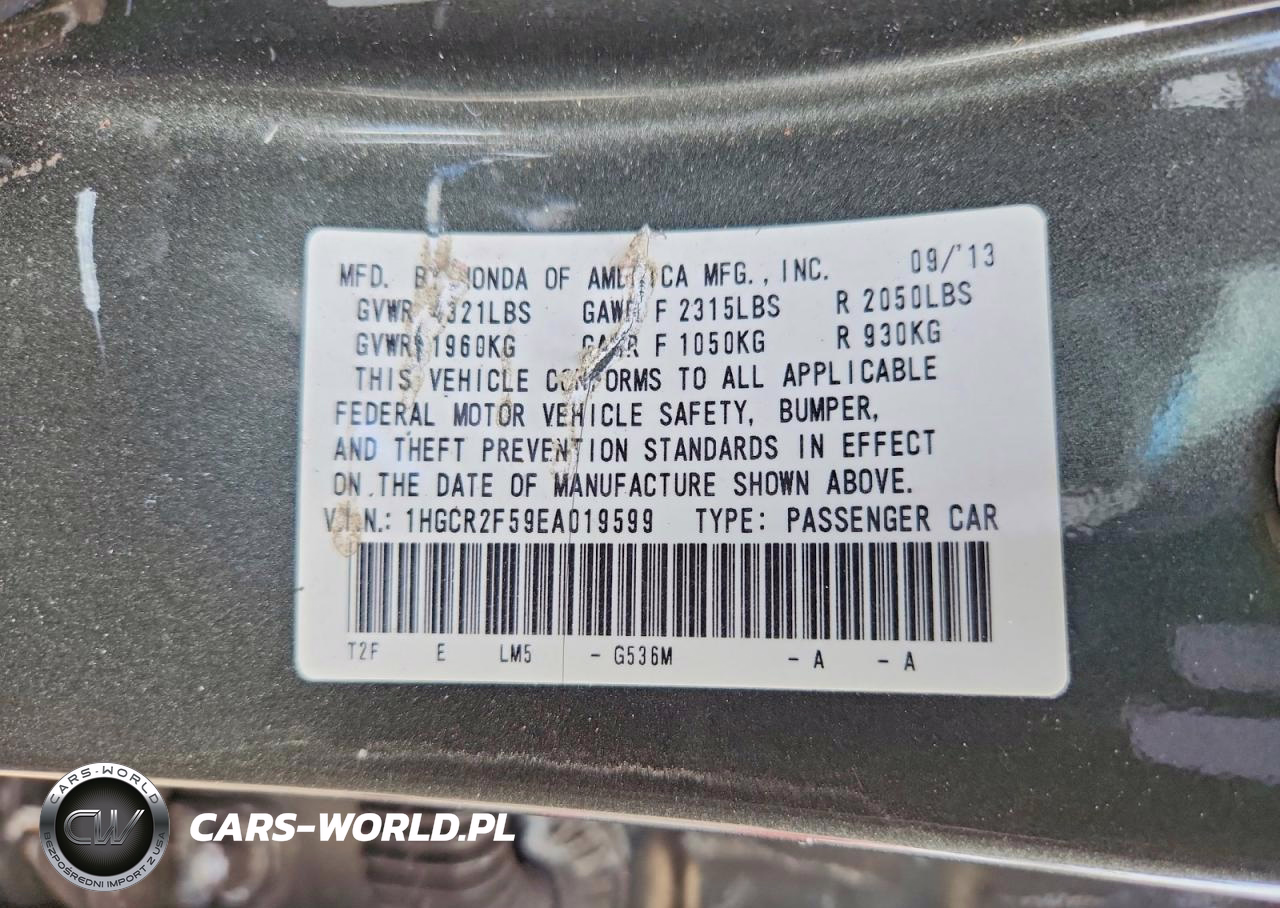Copart Nr: C-49018816 VIN: 1HGCR2F59EA019599 Port: Elizabeth, NJ