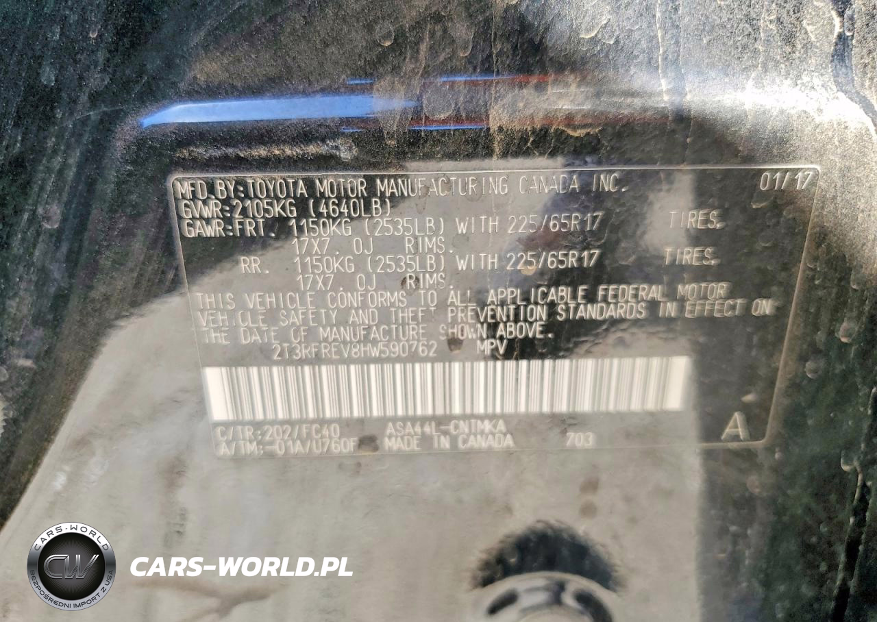 Copart Nr: C-49022736 VIN: 2T3RFREV8HW590762 Port: Los Angeles, CA