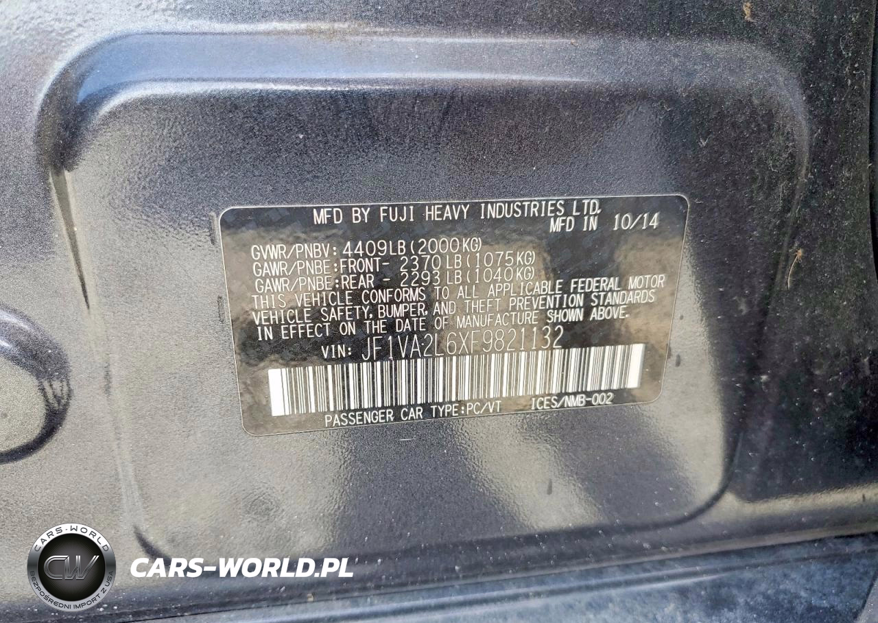 Copart Nr: C-49026636 VIN: JF1VA2L6XF9821132 Port: Savannah, GA