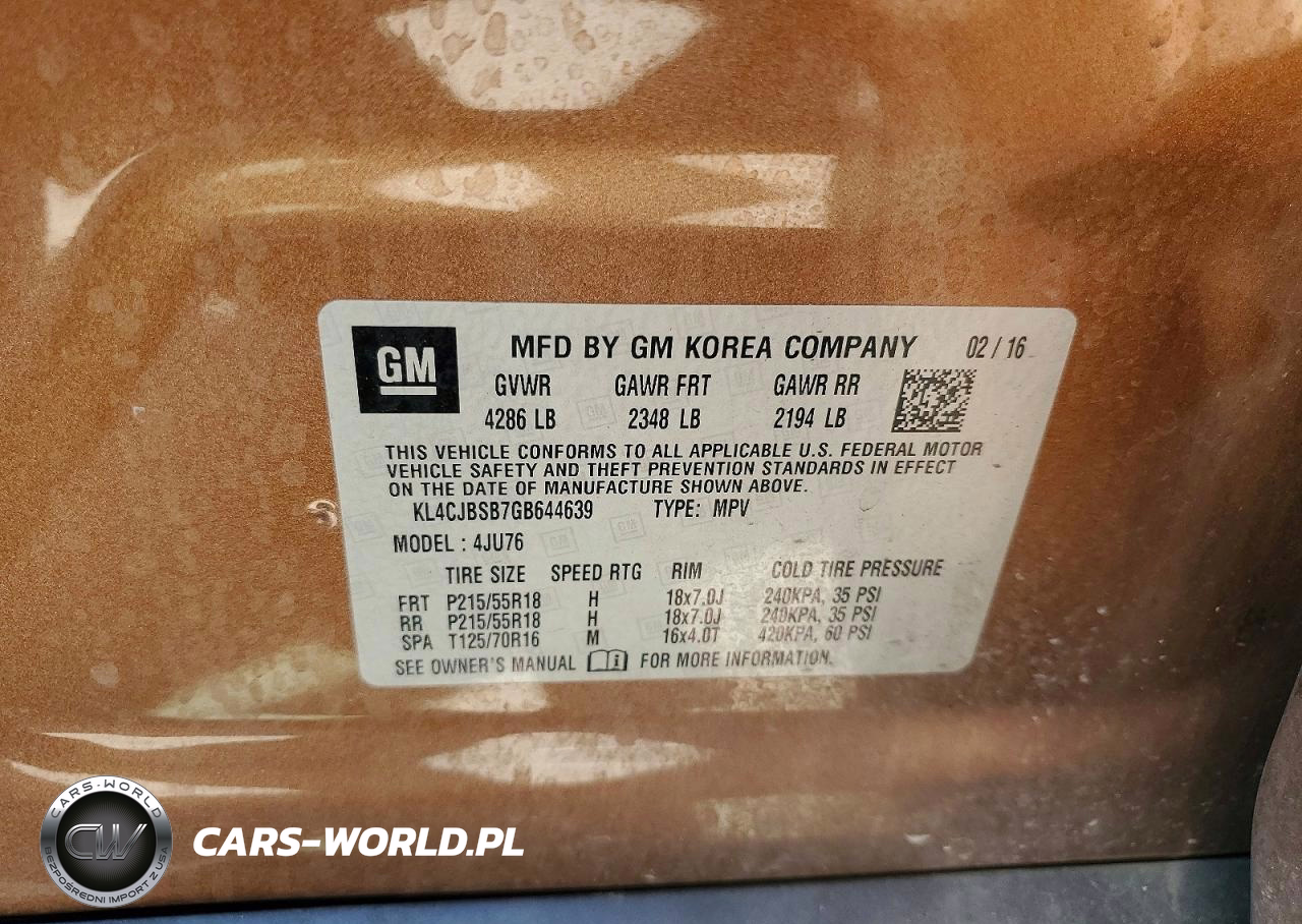 Copart Nr: C-49026886 VIN: KL4CJBSB7GB644639 Port: Los Angeles, CA
