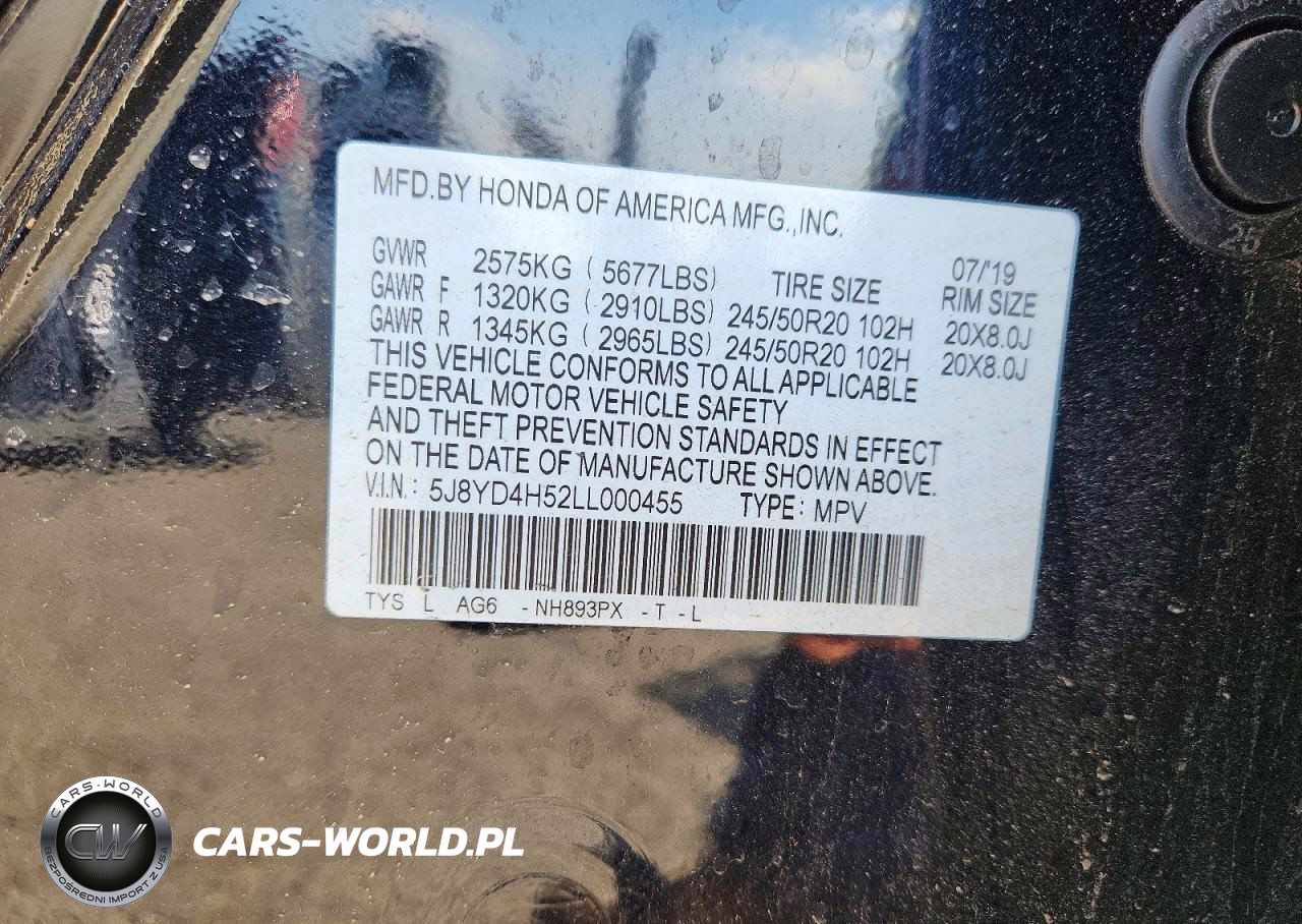 Copart Nr: C-49027006 VIN: 5J8YD4H52LL000455 Port: Elizabeth, NJ