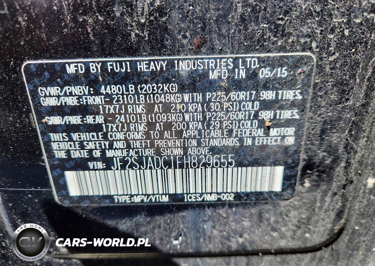Copart Nr: C-49033656 VIN: JF2SJADC1FH829655 Port: Elizabeth, NJ