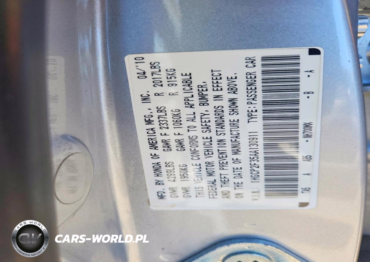 Copart Nr: C-49034196 VIN: 1HGCP2F35AA130911 Port: Elizabeth, NJ