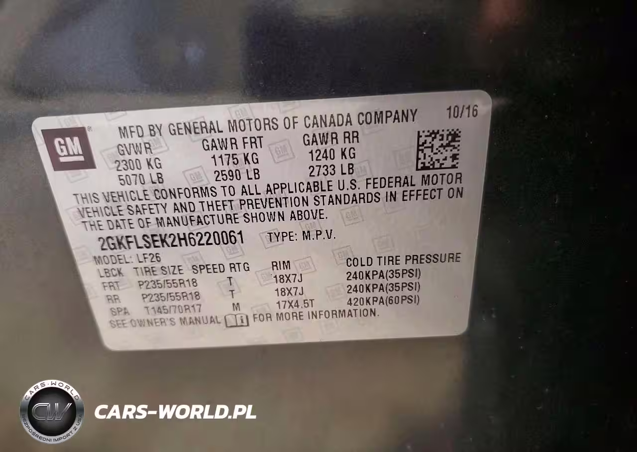 Copart Nr: C-49048866 VIN: 2GKFLSEK2H6220061 Port: Elizabeth, NJ