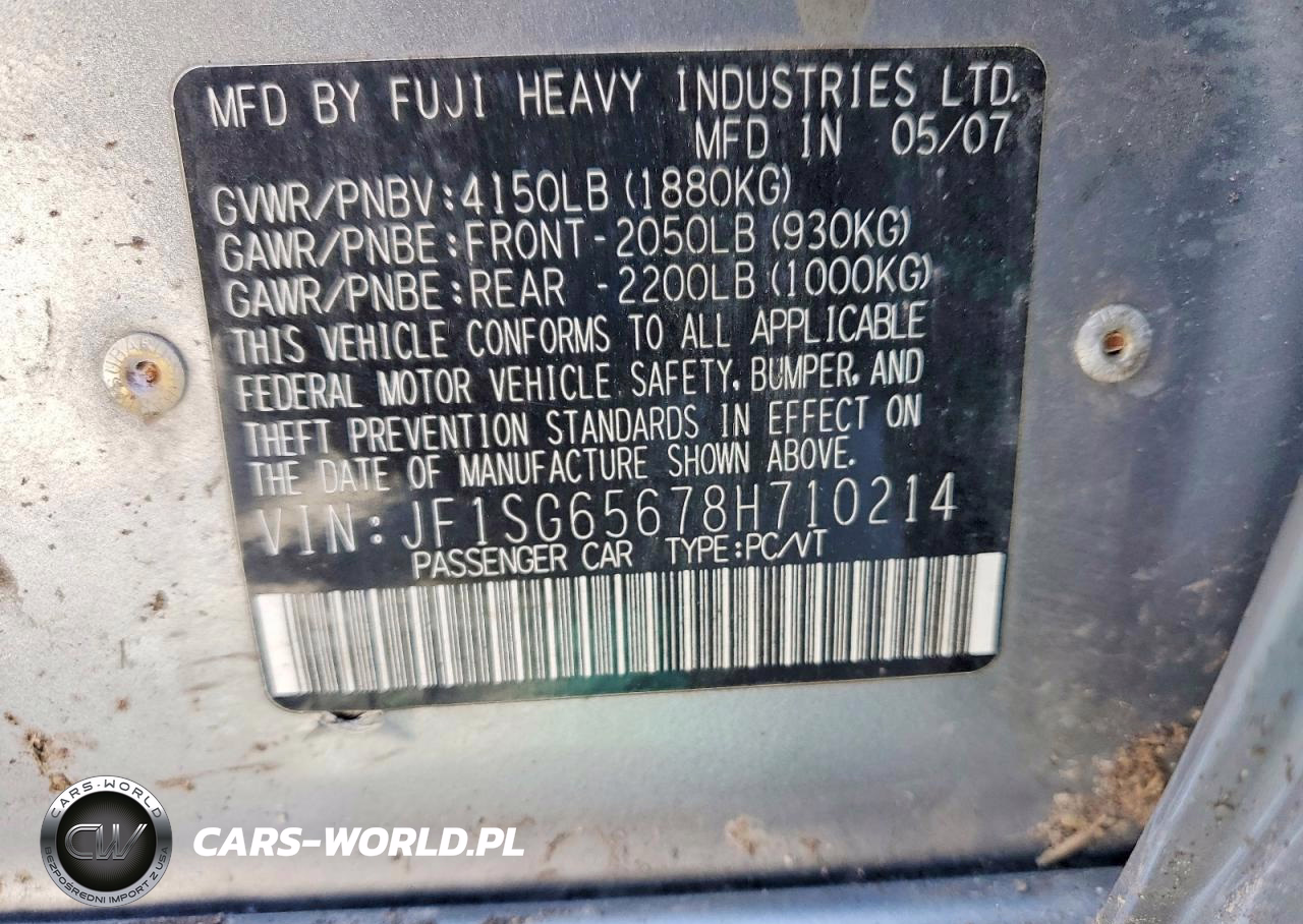 Copart Nr: C-49061876 VIN: JF1SG65678H710214 Port: Elizabeth, NJ