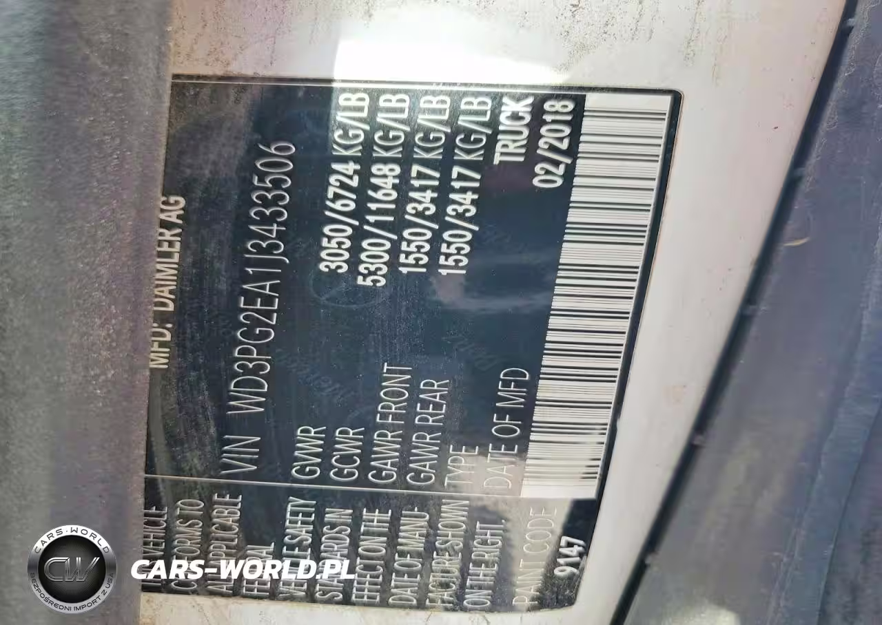 Copart Nr: C-49061926 VIN: WD3PG2EA1J3433506 Port: Los Angeles, CA