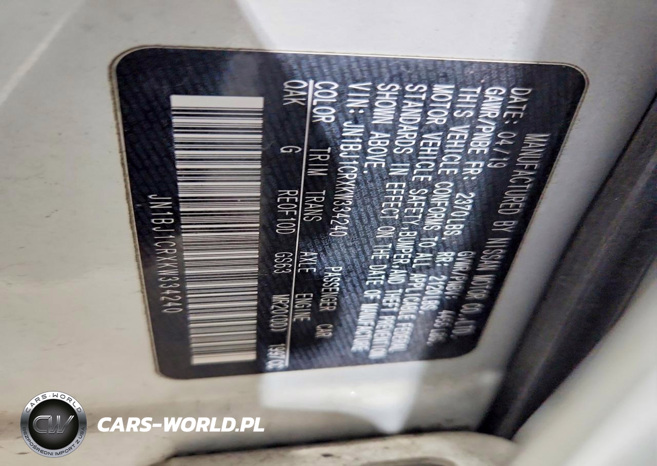 Copart Nr: C-49066656 VIN: JN1BJ1CRXKW334240 Port: Elizabeth, NJ