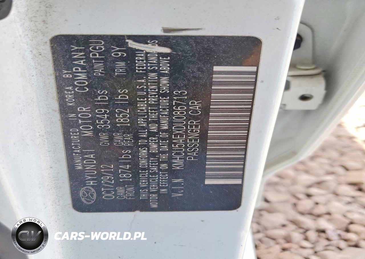 Copart Nr: C-49075866 VIN: KMHCU5AEXDU086713 Port: Los Angeles, CA