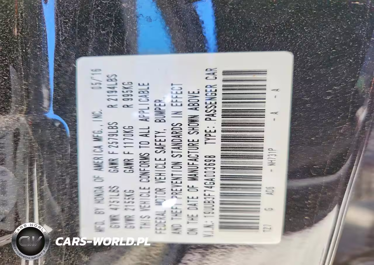 Copart Nr: C-49083616 VIN: 19UUB3F74GA003698 Port: Houston, TX