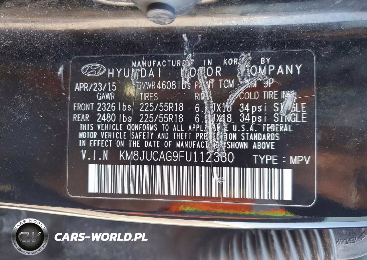 Copart Nr: C-49093146 VIN: KM8JUCAG9FU112380 Port: Indianapolis, IN