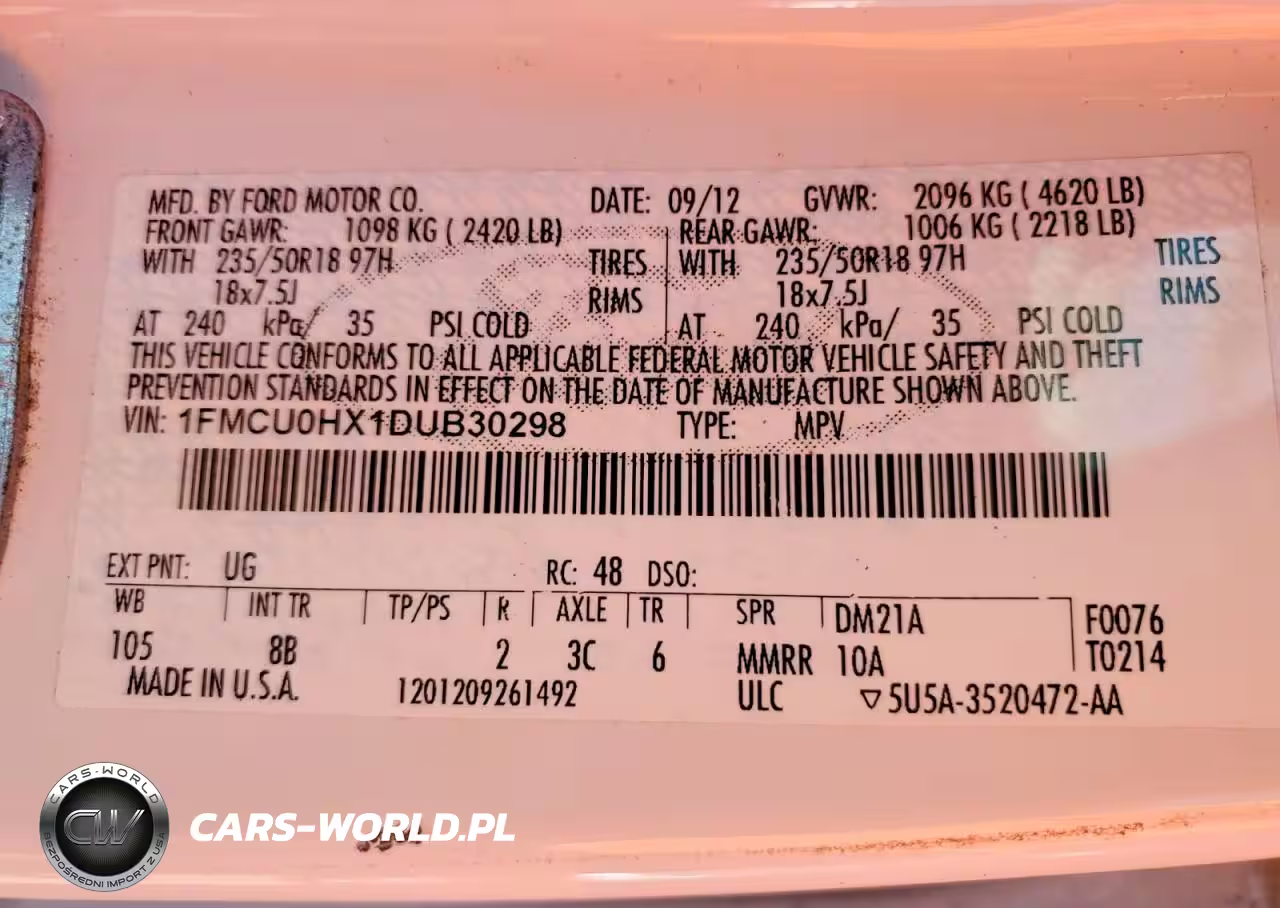 Copart Nr: C-49103896 VIN: 1FMCU0HX1DUB30298 Port: Indianapolis, IN