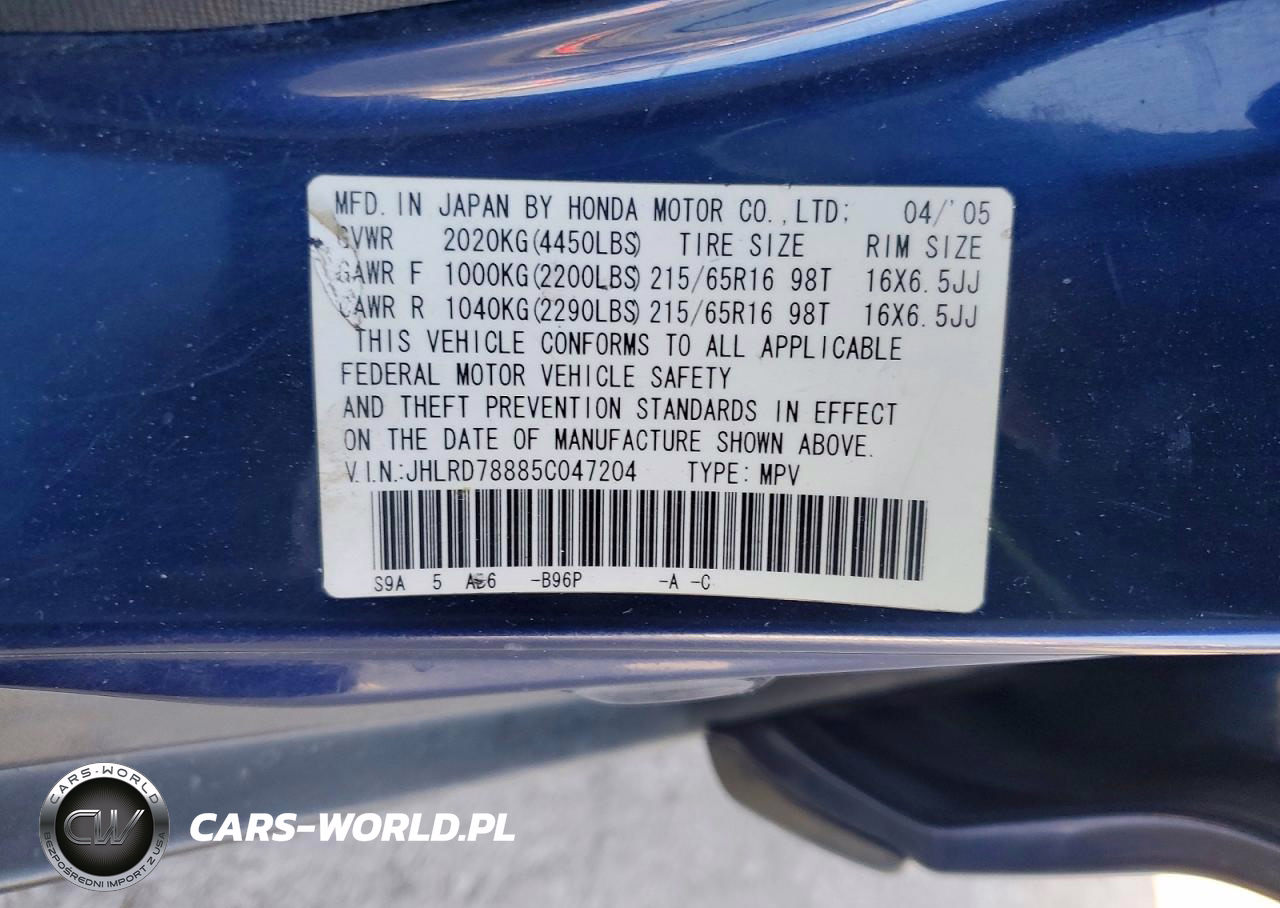 Copart Nr: C-49111406 VIN: JHLRD78885C047204 Port: Los Angeles, CA