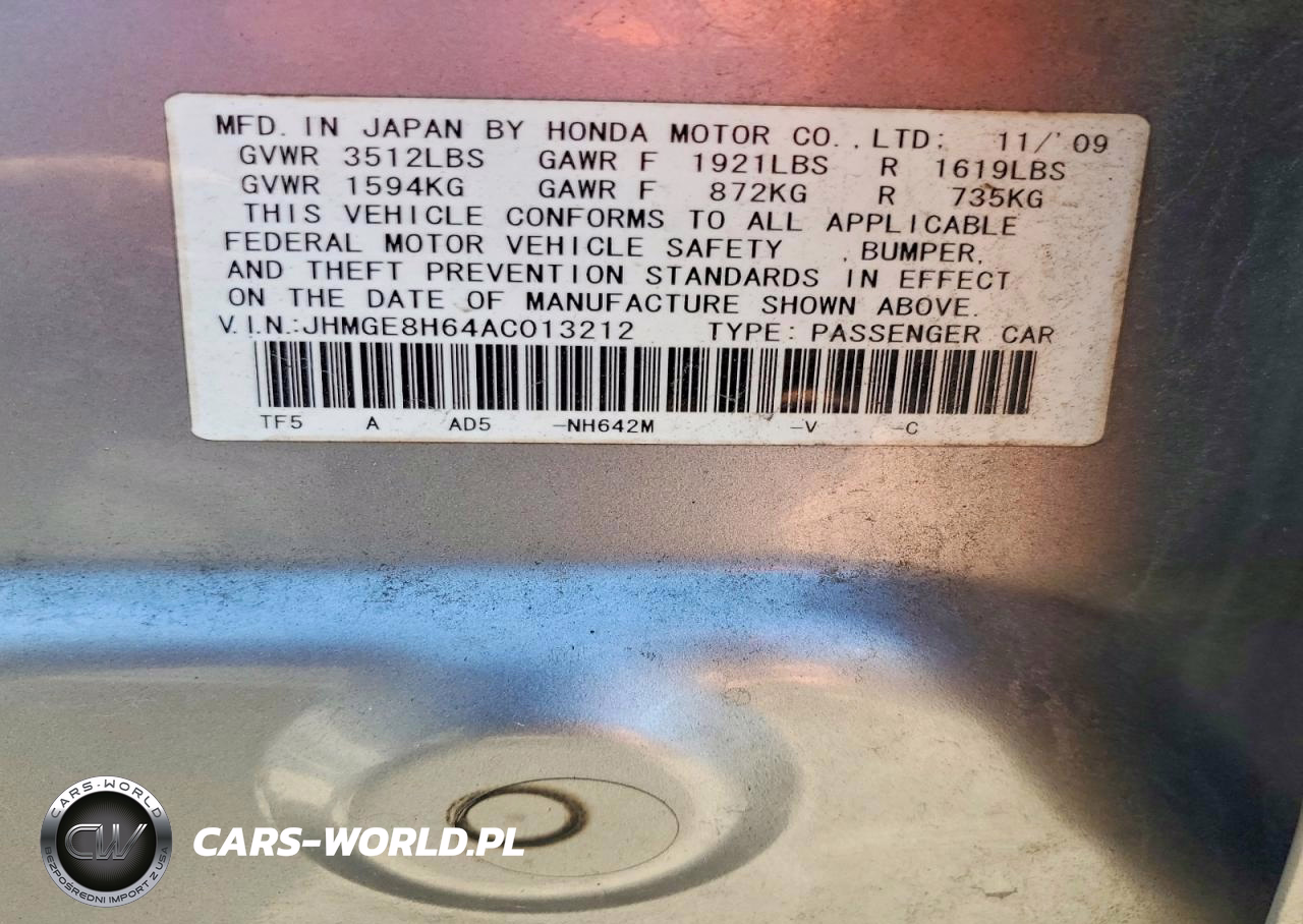 Copart Nr: C-49123836 VIN: JHMGE8H64AC013212 Port: Elizabeth, NJ