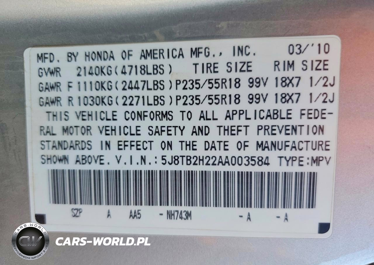 Copart Nr: C-49129136 VIN: 5J8TB2H22AA003584 Port: Los Angeles, CA