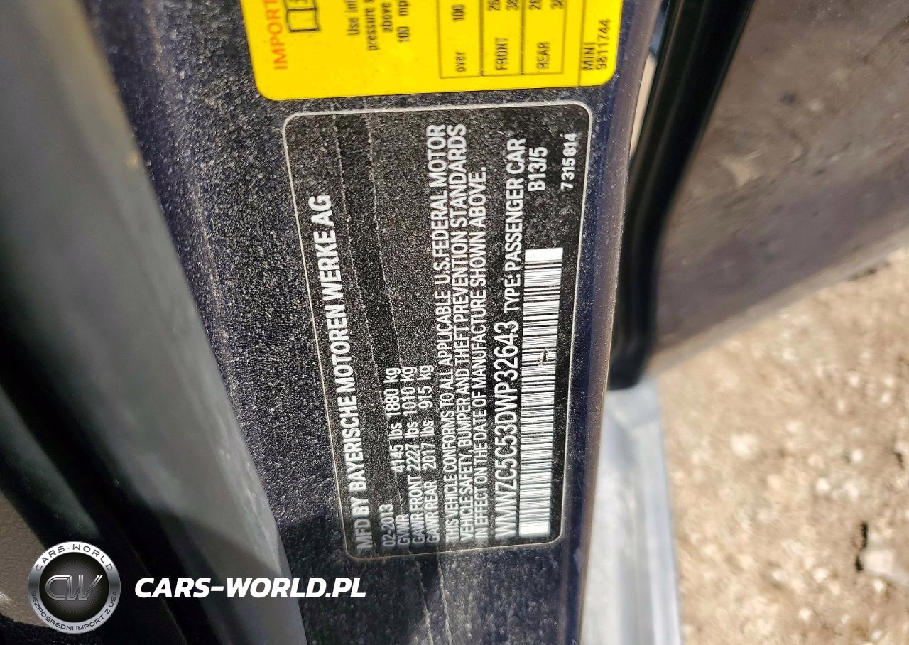 Copart Nr: C-49130136 VIN: WMWZC5C53DWP32643 Port: Indianapolis, IN