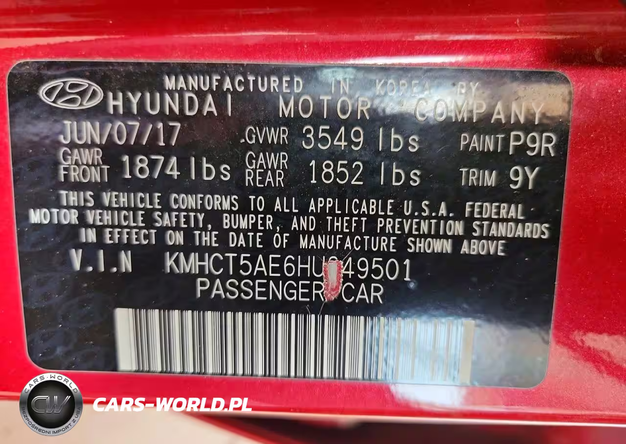 Copart Nr: C-49152156 VIN: KMHCT5AE6HU349501 Port: Los Angeles, CA