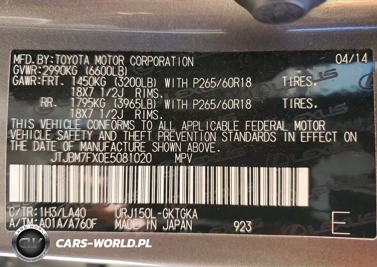 Copart Nr: C-49153666 VIN: JTJBM7FX0E5081020 Port: Houston, TX