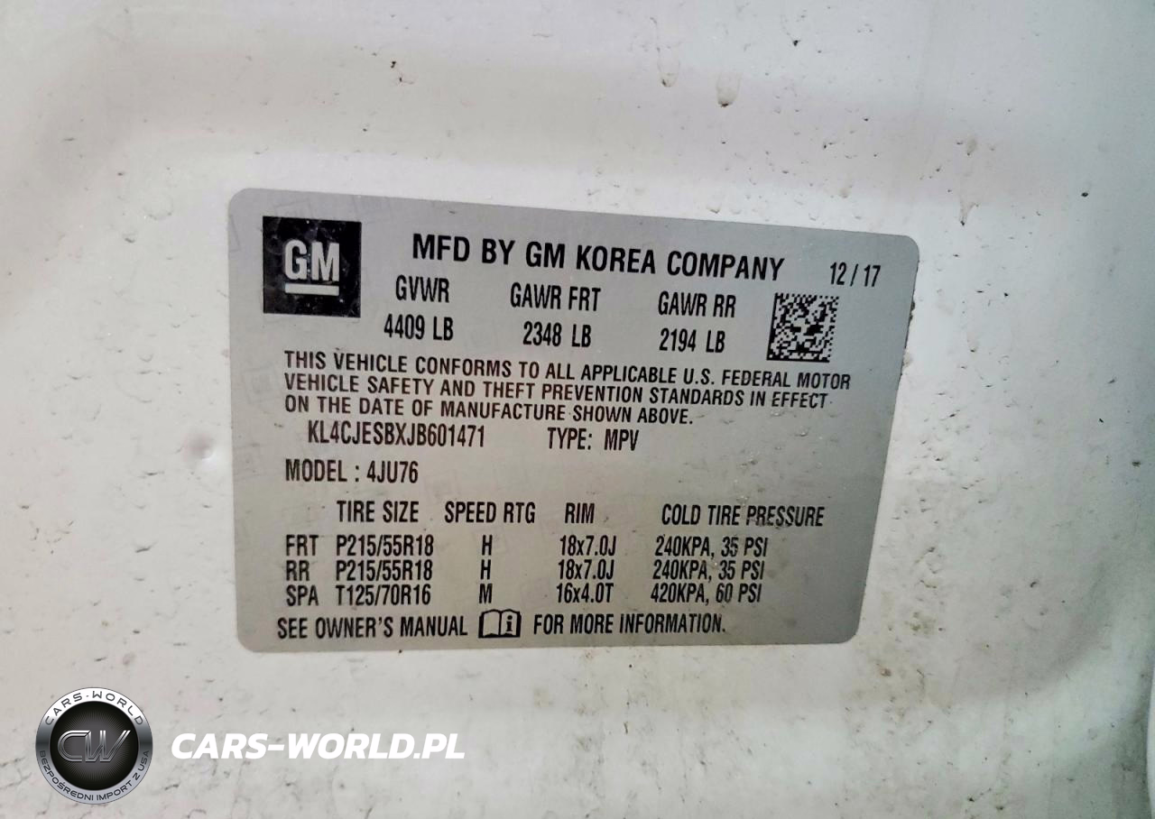 Copart Nr: C-49159126 VIN: KL4CJESBXJB601471 Port: Elizabeth, NJ