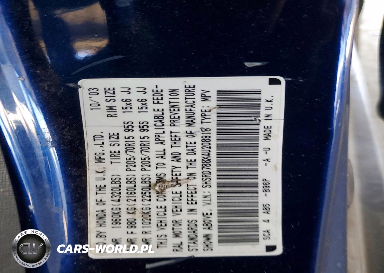 Copart Nr: C-49159176 VIN: SHSRD788X4U208918 Port: Los Angeles, CA