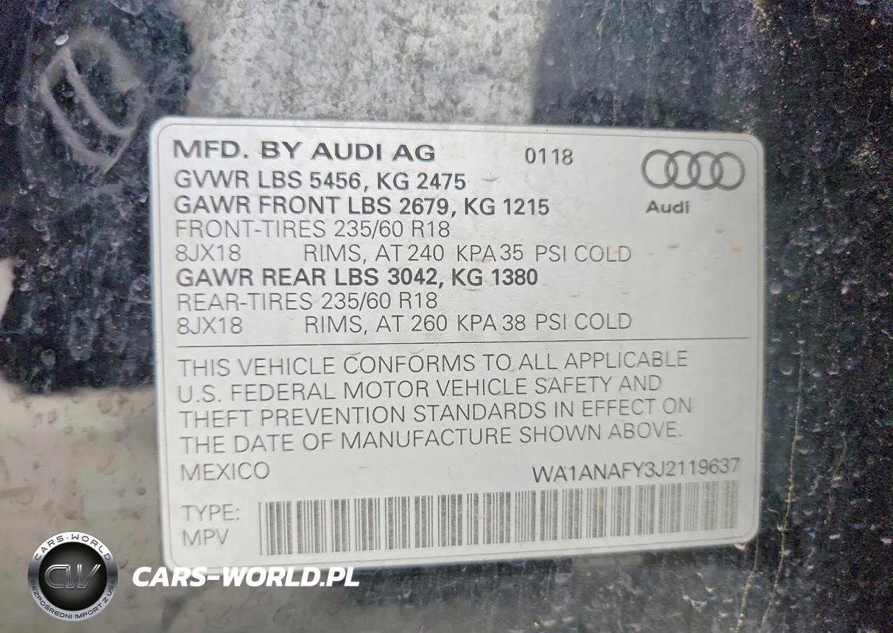 Copart Nr: C-49160896 VIN: WA1ANAFY3J2119637 Port: Houston, TX
