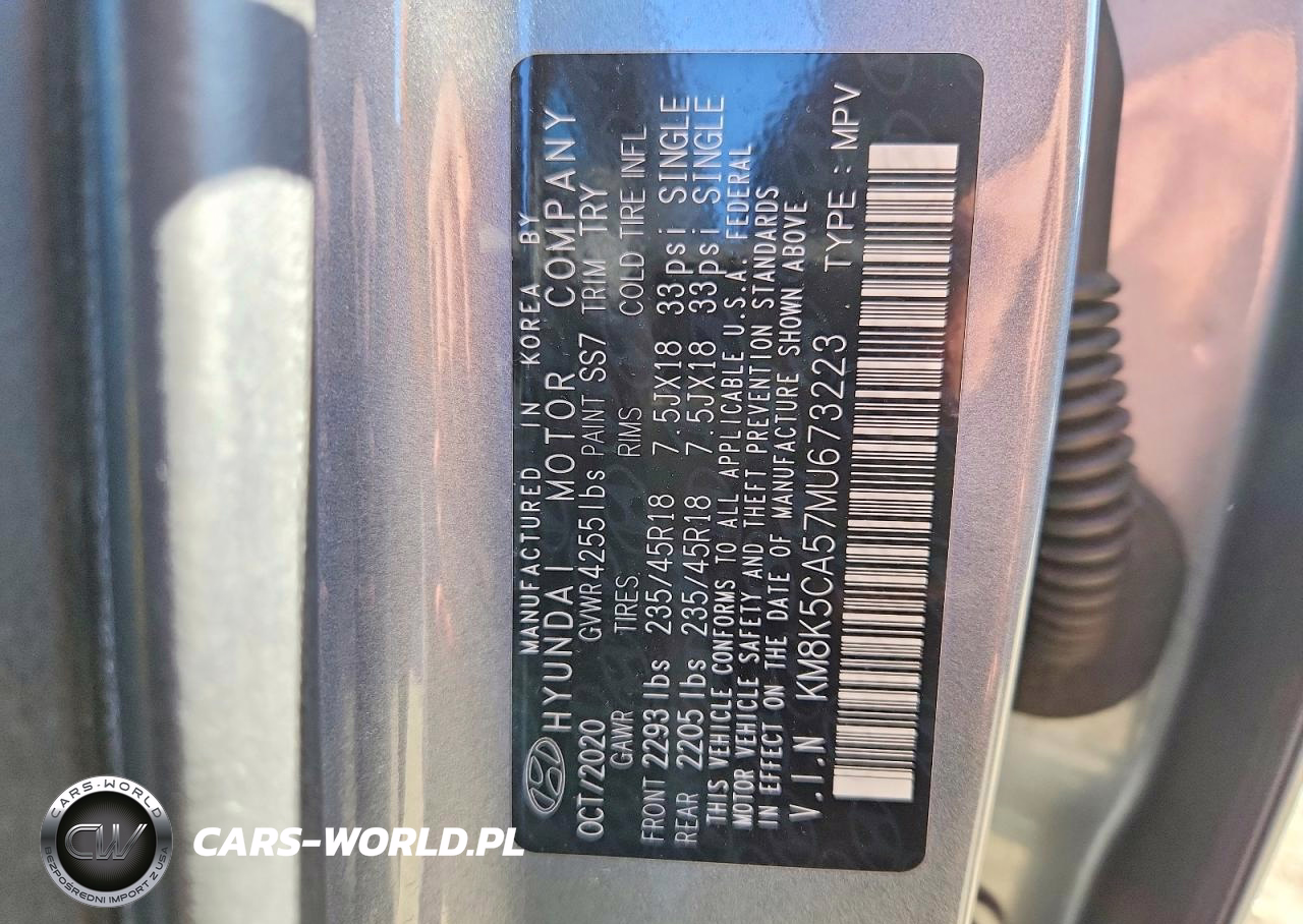 Copart Nr: C-49163806 VIN: KM8K5CA57MU673223 Port: Elizabeth, NJ