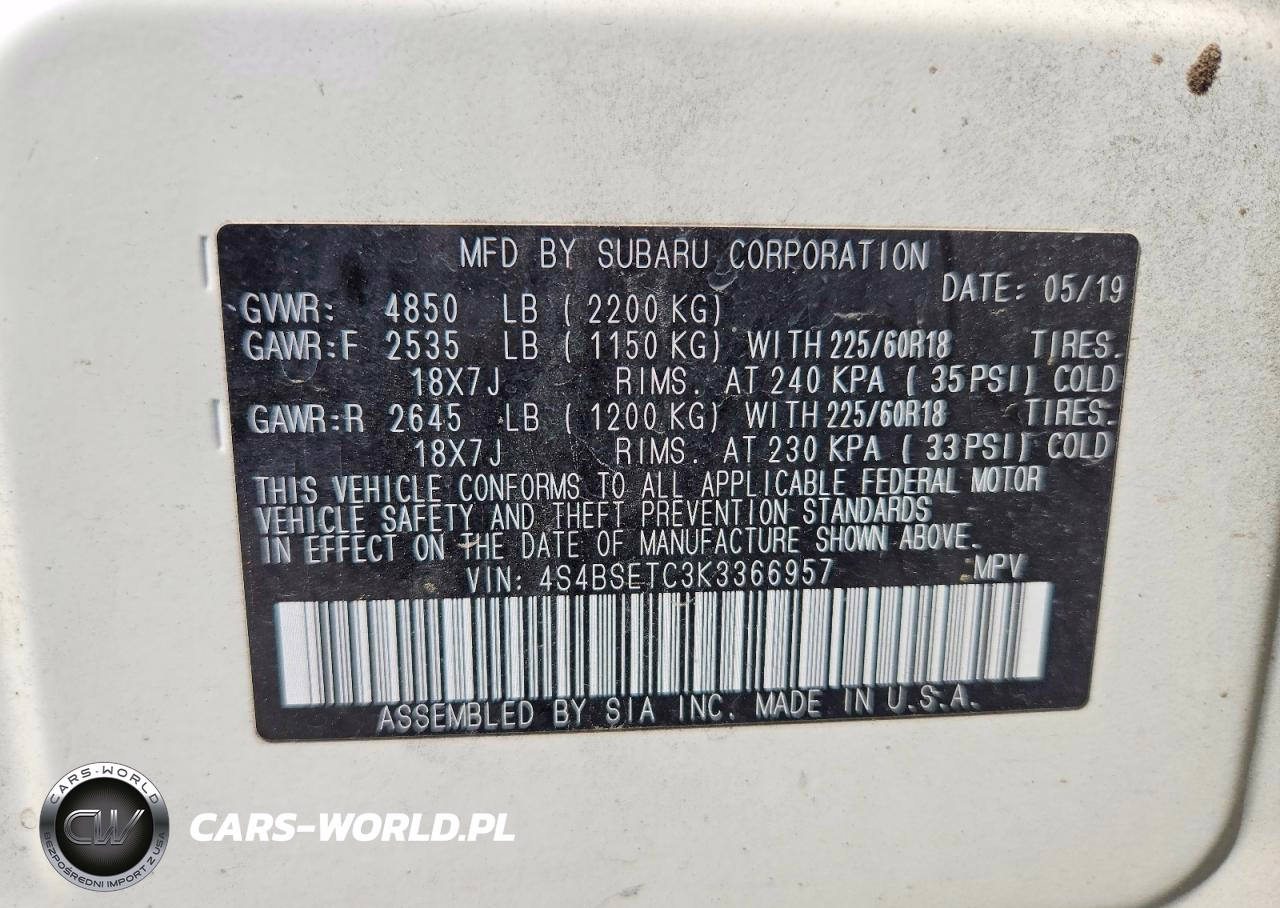 Copart Nr: C-49236316 VIN: 4S4BSETC3K3366957 Port: Houston, TX