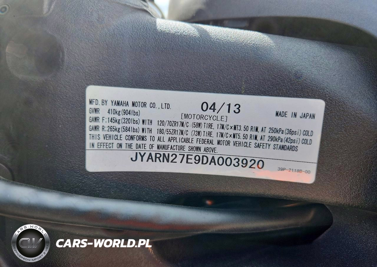 Copart Nr: C-49239266 VIN: JYARN27E9DA003920 Port: Savannah, GA