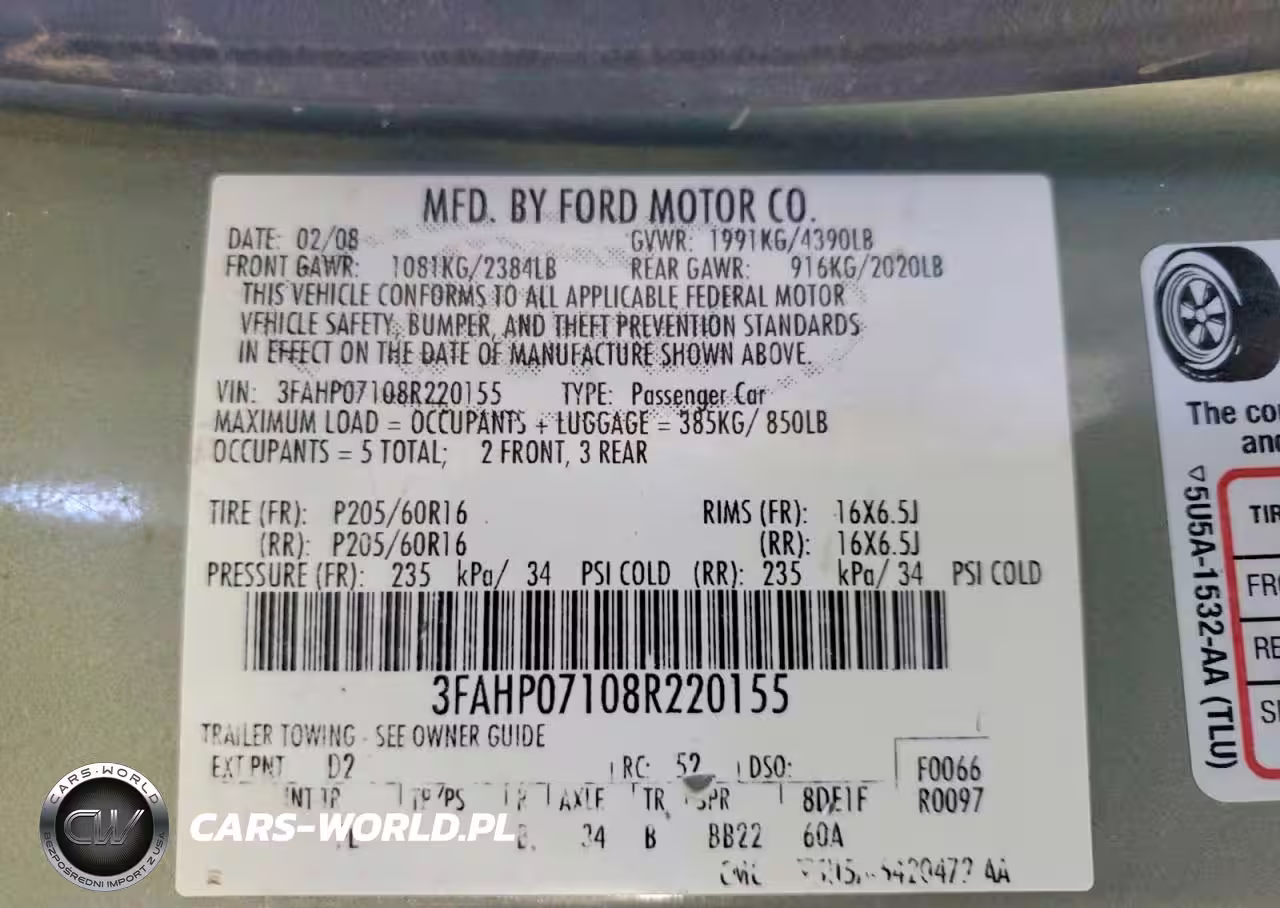 Copart Nr: C-49253226 VIN: 3FAHP07108R220155 Port: Los Angeles, CA