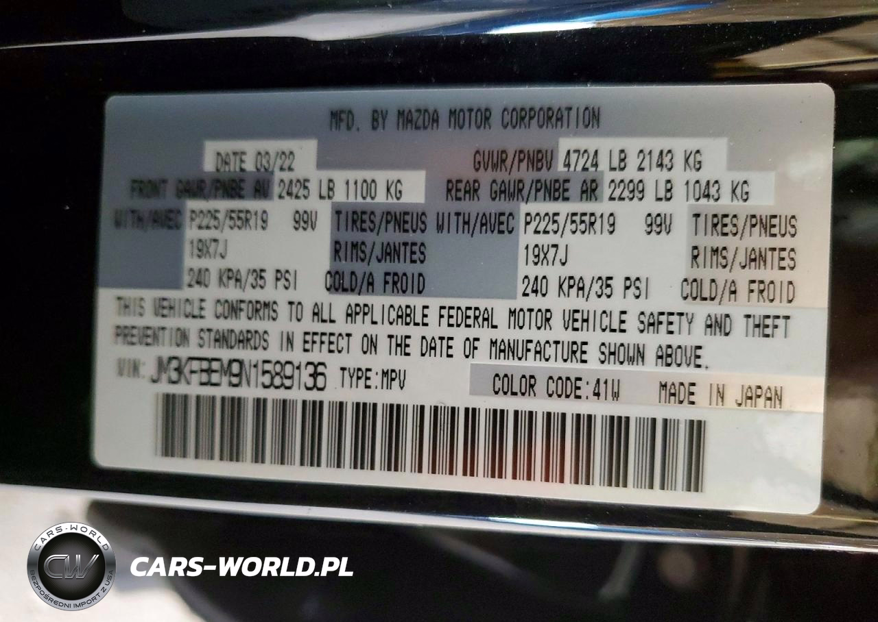 Copart Nr: C-49254176 VIN: JM3KFBEM9N1589136 Port: Los Angeles, CA