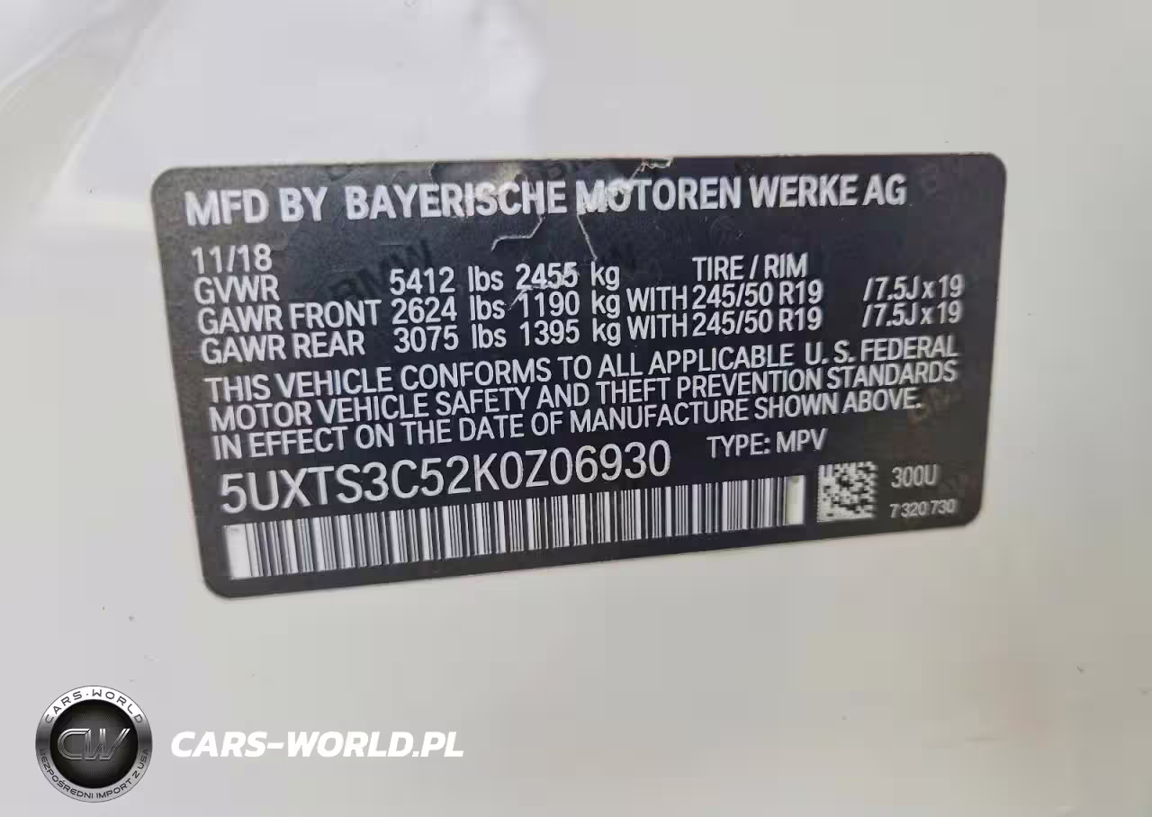Copart Nr: C-49262936 VIN: 5UXTS3C52K0Z06930 Port: Elizabeth, NJ
