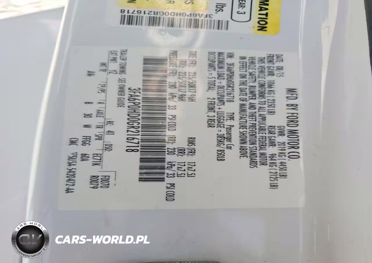 Copart Nr: C-49275136 VIN: 3FA6P0HD0GR216718 Port: Savannah, GA