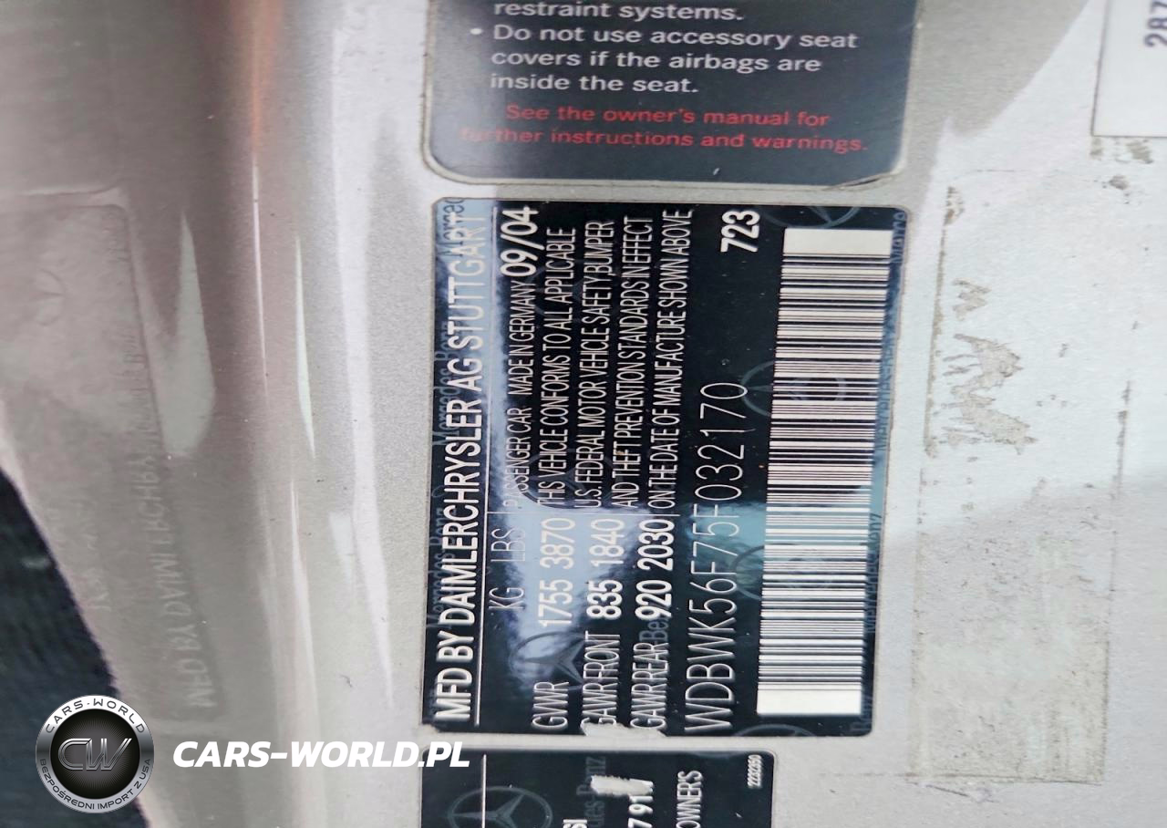 Copart Nr: C-49283836 VIN: WDBWK56F75F032170 Port: Houston, TX
