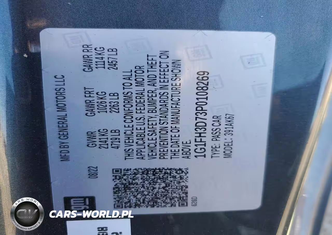 Copart Nr: C-49287606 VIN: 1G1FH3D73P0108269 Port: Houston, TX